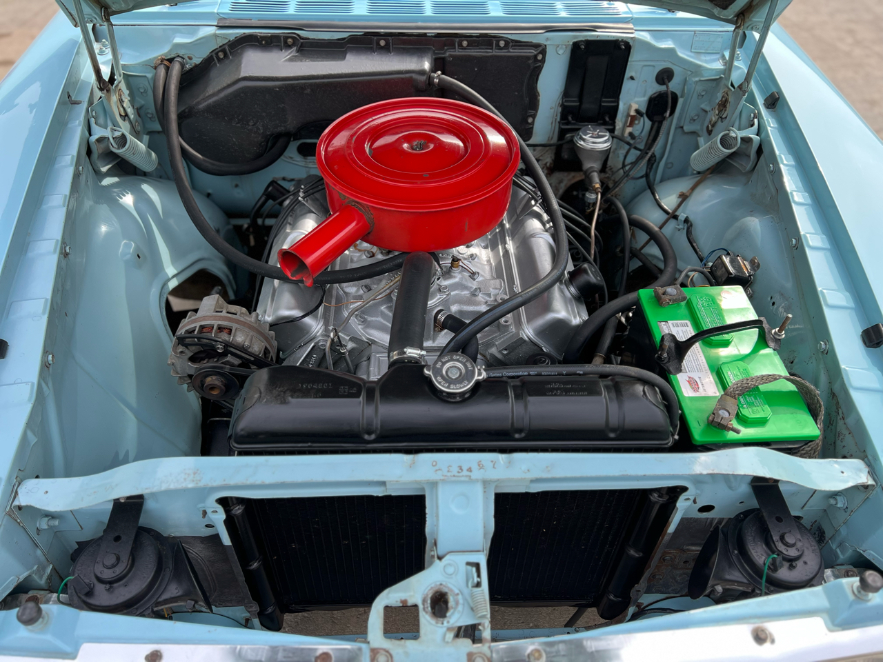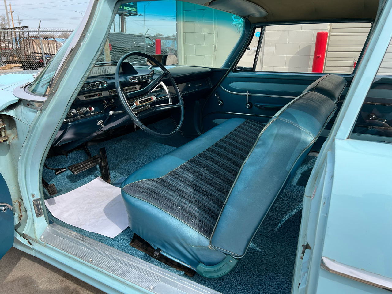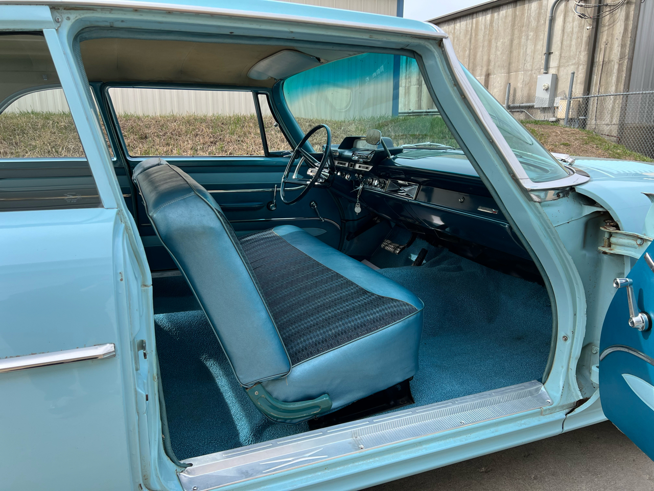318 CI V-8 ENGINE, NEW DUAL EXHAUST, PUSHBUTTON AUTOMATIC TRANSMISSION, POWER STEERING, POWER BRAKES, MOSTLY ORIGINAL PAINT, RADIO DELETE, RARE FACTORY CLOCK, SPLIT BENCH SEAT, PATTERNED CLOTH AND VINYL UPHOLSTERY, MANUALS AND LITERATURE INCLUDED